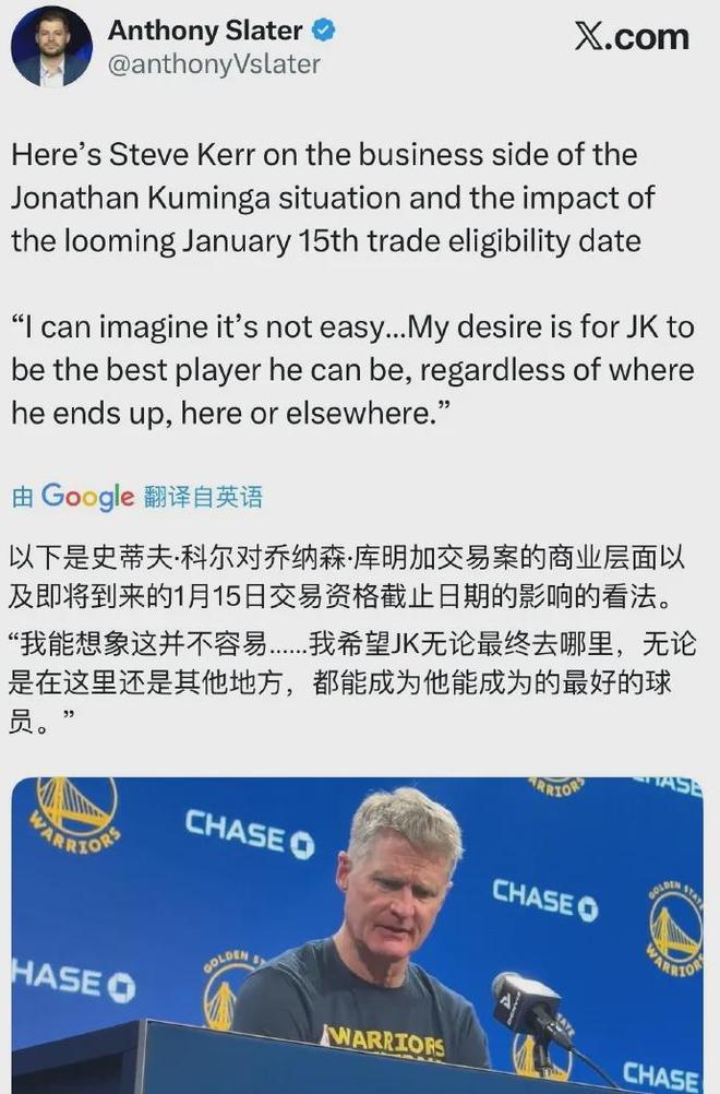 今夏休赛期,库明加与勇士达成两年4850万美元续约合同,第二年球队选项,前者还放弃了交易否决权,那时就计划好了会在本赛季中期为他寻找新下家,且如今科尔将其当做透明人,总之分道扬镳几乎已成定局。